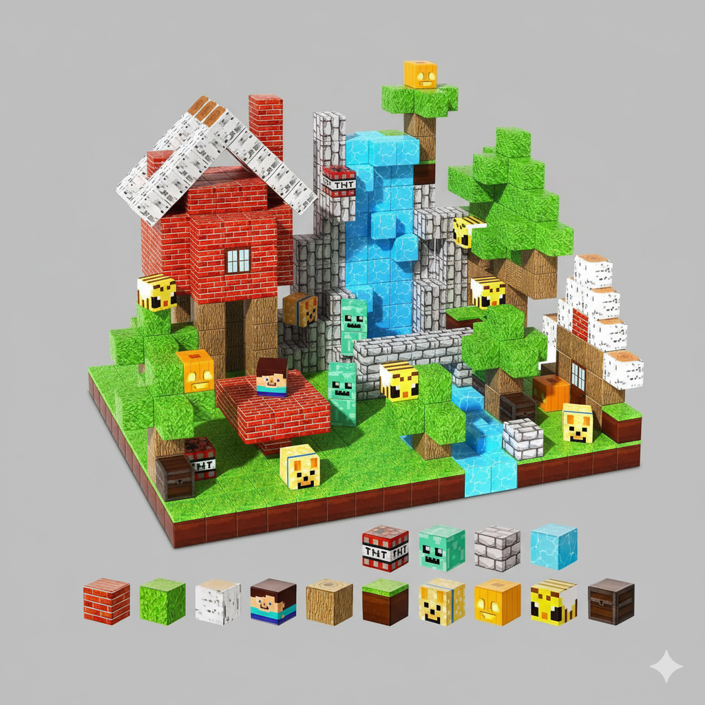 Magnetic Building Blocks Mine World Magnetic Forest House Brick Cube Toys Set STEM Sensory 2025 Best Gift for 3+ Boy Girl Kid